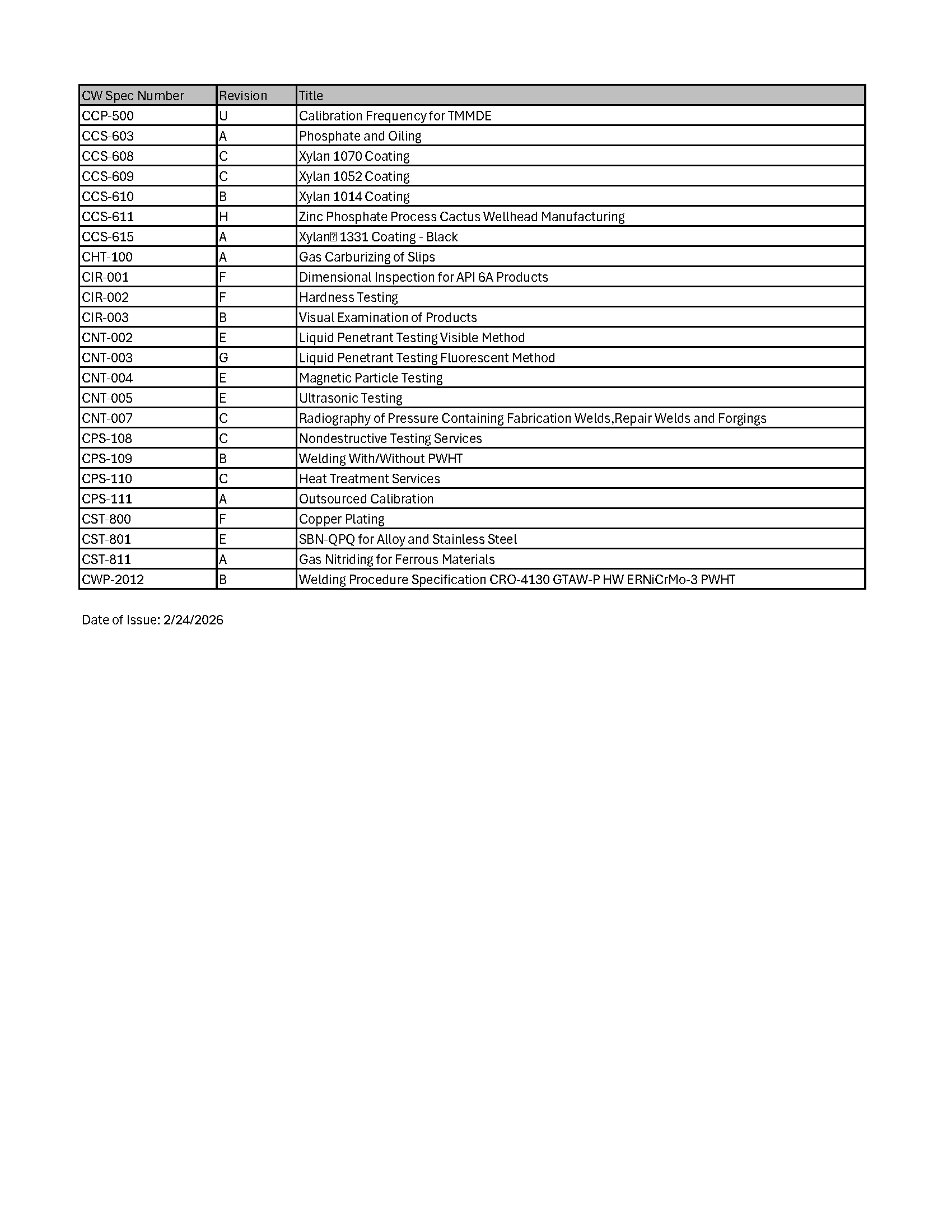 Cactus Wellhead™ Approved Sub-Suppliers